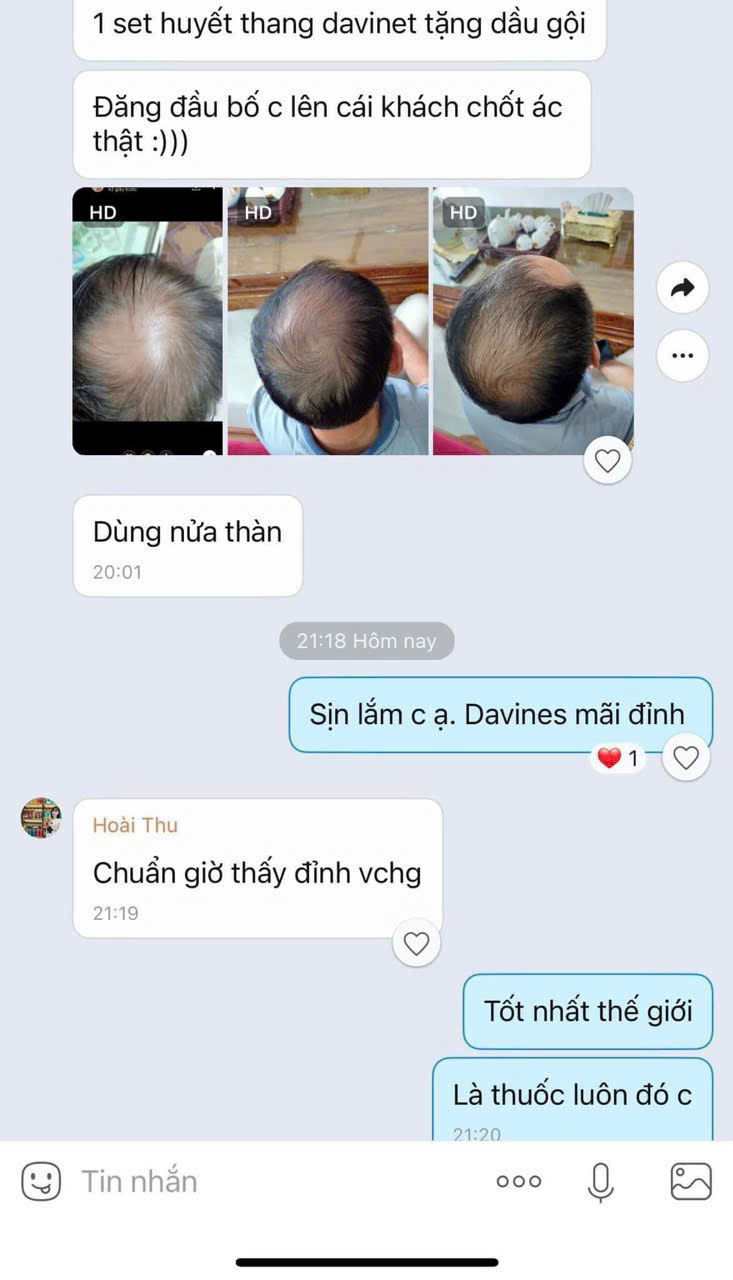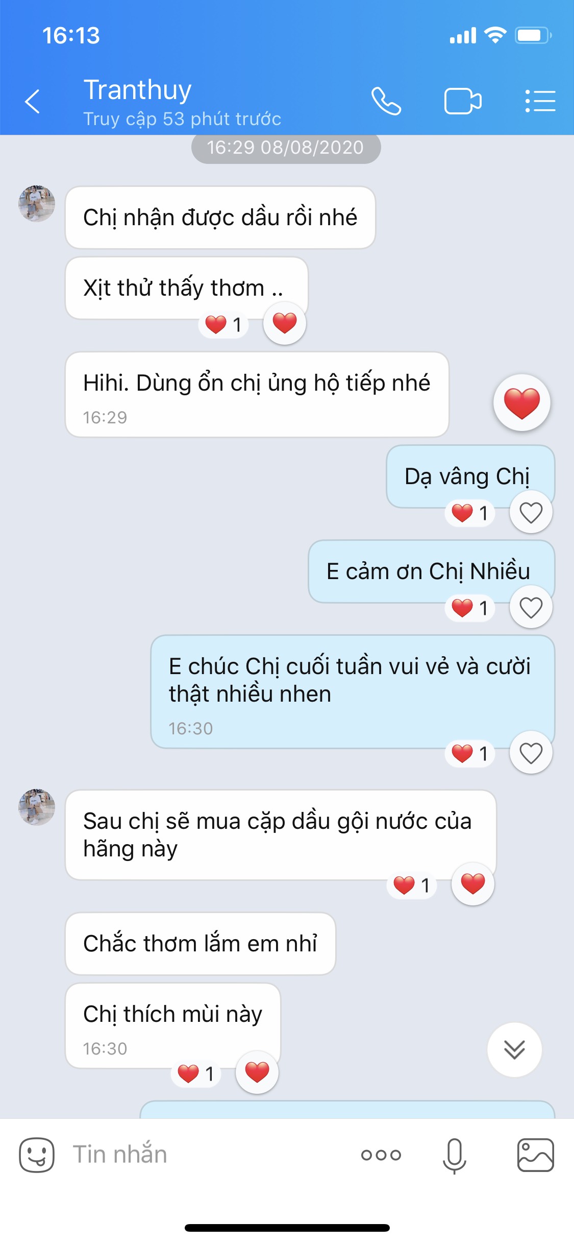 Còn gì vui hơn khi Dầu Gội Cao Cấp nhận được những lời feedback chân thực nhất của khách hàng về sản phẩm chăm sóc tóc. Đó hoàn toàn là niềm vinh dự và cũng trở thành động lực giúp Dầu Gội Cao Cấp cố gắng hơn nữa trong việc tư vẫn sản phẩm và giao hàng đến tay người tiêu dùng.